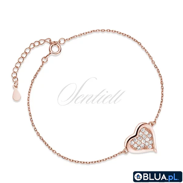 Srebrna złocona bransoletka pr.925, serce z cyrkoniami - różowe złoto