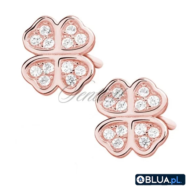 Srebrne kolczyki pr. 925 koniczynki z cyrkoniami - różowe złoto
