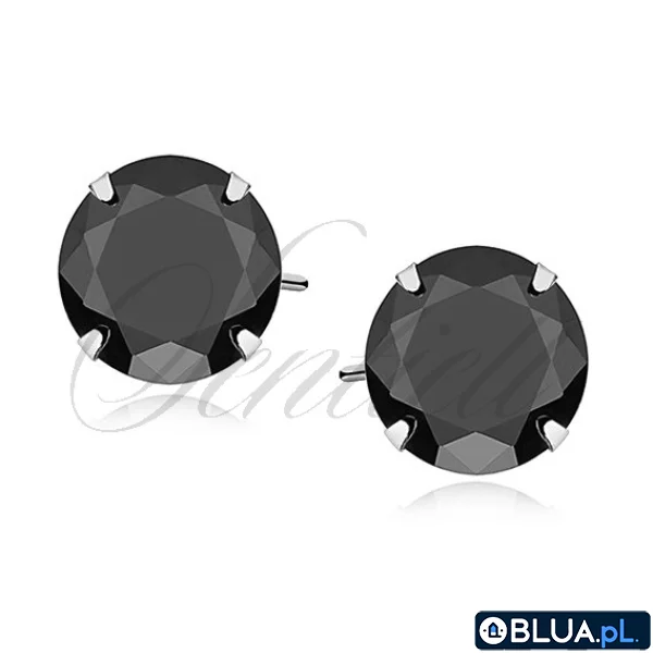 Srebrne kolczyki pr.925 Czarna cyrkonia okrągła średnica 8mm