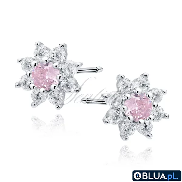 Srebrne kolczyki pr.925 kwiatek z różową cyrkonią