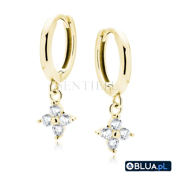 nr kat. Z1995DEG_W Srebrne pozłacane kolczyki pr. 925 kwiatek waga ~ 2,3g średnica kwiatka - 7mm średnica kółka - 13mm szerokość kółka - 2mm