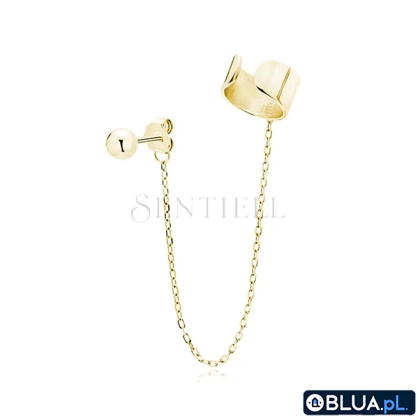 Srebrne pozłacane kolczyki pr.925 z nausznicą na łańcuszku