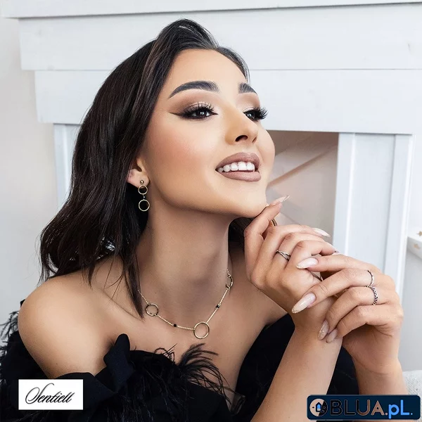 Srebrny pozłacany naszyjnik pr.925 kółka i czarne spinele