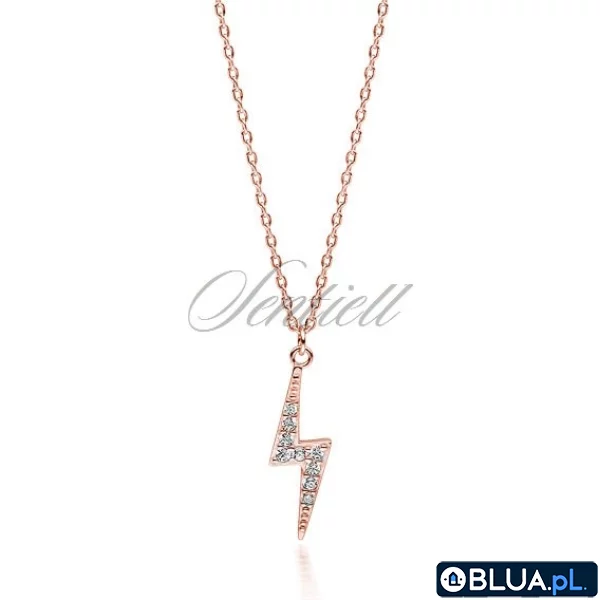 Srebrny pozłacany naszyjnik pr.925 z błyskawicą z cyrkoniami - różowe złoto