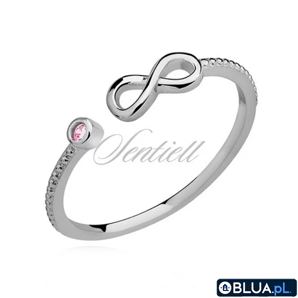 Srebrny delikatny pierścionek pr.925 cyrkonia różowa - Nieskończoność