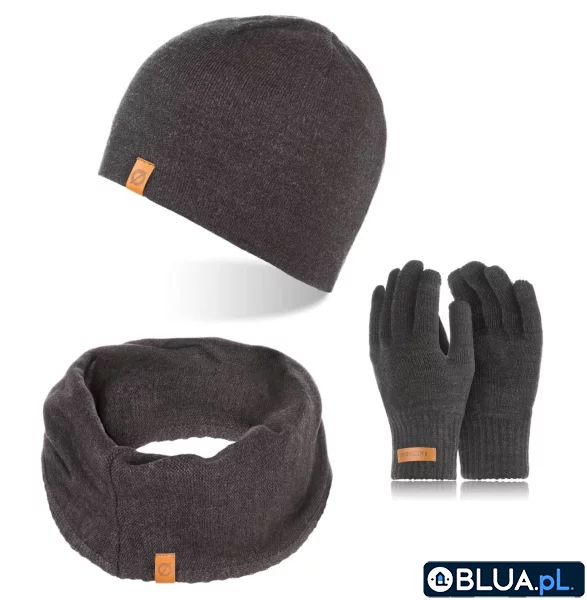 Brødrene 3w1 czapka cz1 + komin k3 + rękawiczki r1 ciemnoszare