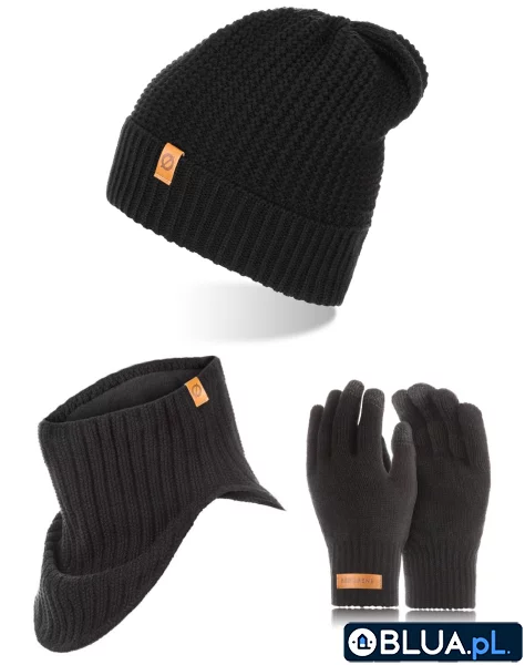 Brødrene 3w1 czapka cz14 + komin k1 + rękawiczki r1 czarne