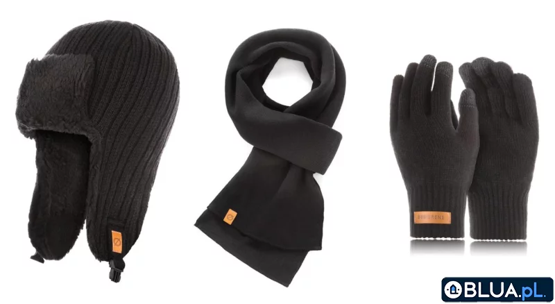 Ciepły, zimowy komplet męski Brødrene. Ciepła czapka uszatka podszyta jest dodatkową warstwą polaru, szalik można nosić na wiele sposobów a w rękawiczkach można obsługiwać smartfon oraz ekrany dotykowe.