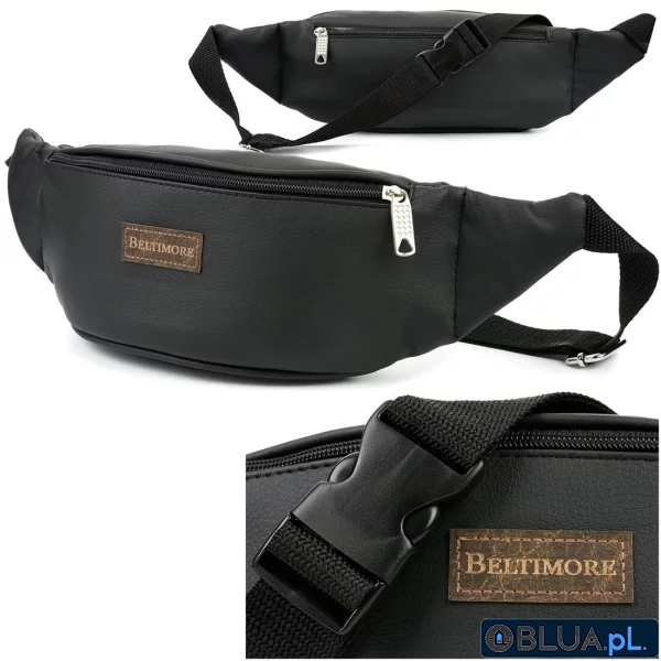 Czarna nerka saszetka na biodro duża lakostka BELTIMORE C81