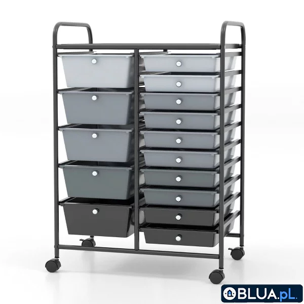 Organizer na kółkach z 15 szufladami w odcieniach szarości