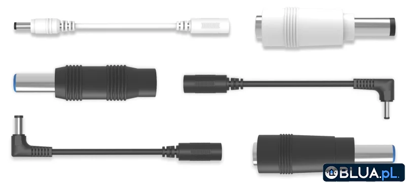 - Kompatybilny z 3 wersjami DC: 5,5 x 2,1 mm (w zestawie adaptery o wymiarach 5,5 × 2,5 mm i 3,5 × 1,35 mm)