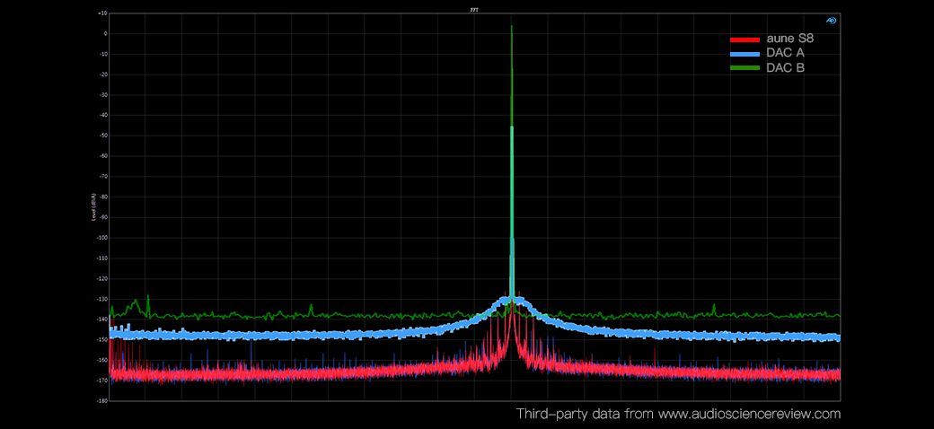 Świetną jakość S8 potwierdzają pomiary jittera dla 44,1 kHz w J-Test, czyli niezależnym teście, który jest jednym z najczęściej wykorzystywanych do sprawdzania jakości DAC-ów.