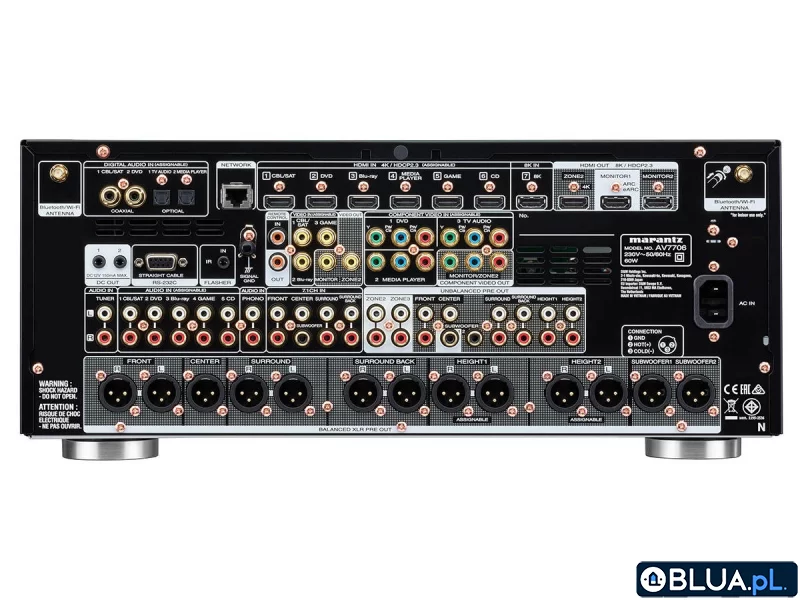 Nowy Marantz AV7706 zapewnia pełne spektrum możliwości łączności oferując osiem wejść i trzy wyjścia HDMI. Jedno dedykowane wejście 8K obsługuje rozdzielczość 8K/60Hz oraz 4K/120Hz, podczas gdy wszystkie inne wejścia obsługują 4K/60Hz, 4:4:4 Pure Color sub-sampling, Dolby Vision, HLG, HDR10, 3D, BT 2020 oraz najnowszy standard ochrony przed kopiowaniem HDCP 2.3. Wyposażony we wszystkie najnowsze technologie i specyfikacje HDMI, AV7706 umożliwia entuzjastom doświadczenie lepszych wrażeń z filmów, gier i telewizji dzięki HDR10+, Dynamic HDR, trybowi automatycznego niskiego opóźnienia (ALLM), zmiennej częstotliwości odświeżania (VRR), szybkiemu przełączaniu mediów (QMS ) oraz obsłudze szybkiego transportu ramek (QFT) na wszystkich wejściach. Procesor wideo może również przeskalować dowolne natywne źródło wideo do jakości 8K. Ponadto, AV7706 został wyposażony w funkcjonalność HDMI eARC, która przetwarza formaty dźwięku 3D, takie jak Dolby Atmos® i DTS:X® w mistrzowskiej jakości bezpośrednio ze źródła TV.