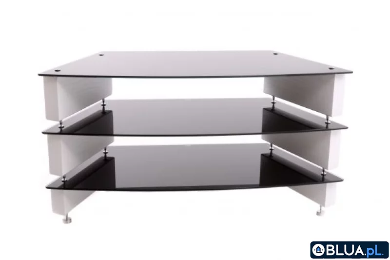 Półki z przezroczystego lub czarnego szkła 6 mm są produkowane zgodnie z normą EN 12105-02 z polerowanymi krawędziami i z maksymalnym obciążeniem 25 kg na półkę.