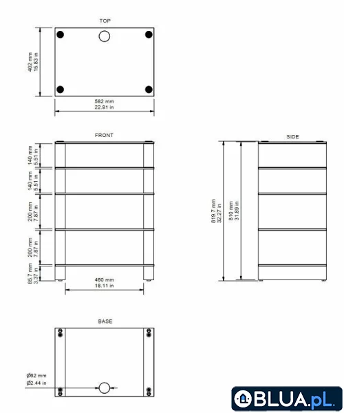 • półki ze szkła hartowanego o grubości 10 mm zgodnego z normą BS EN 1215