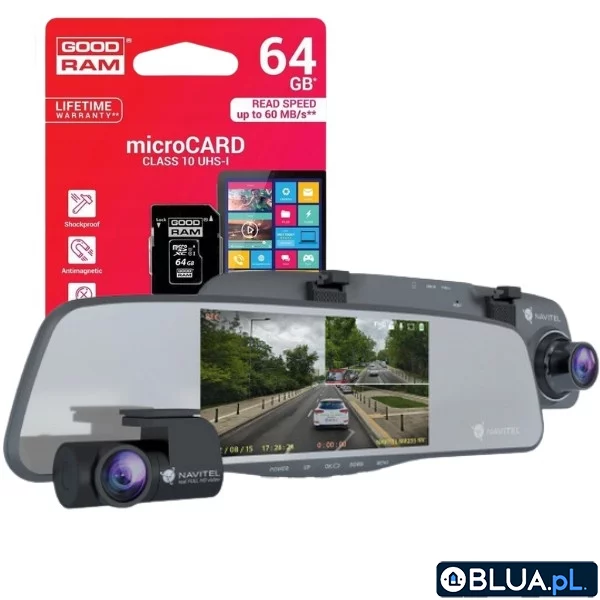 Zestaw Wideorejestrator kamera cofania lusterko Navitel MR255 Night Vision+ karta 64GB