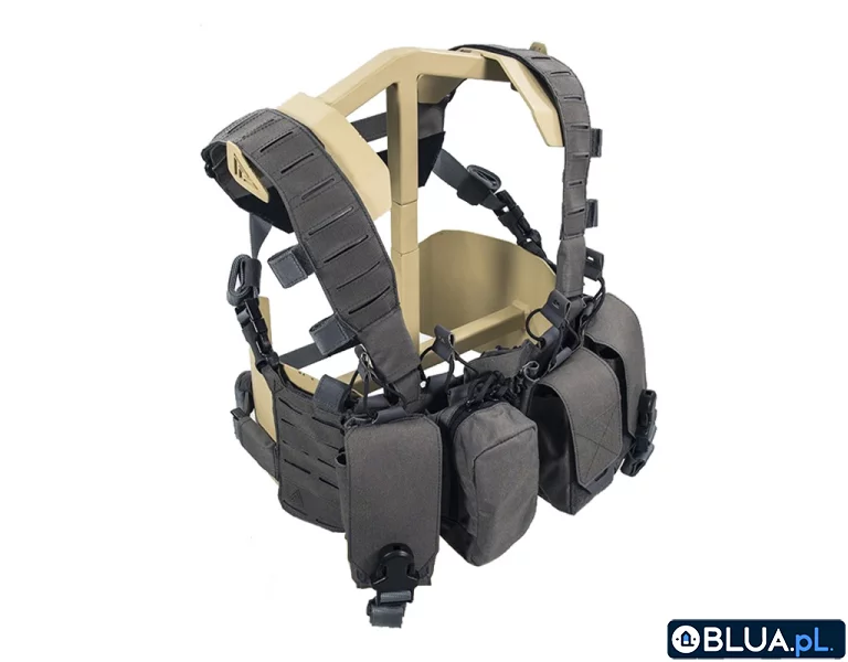 HURRICANE® hybrid chest rig Podobnie jak w trakcie Bitwy o Anglię, nasz HURRICANE® jest koniem pociągowym całej linii. Ten rozpinany z przodu , hybrydowy, częściowo modułowy chest rig, posiada naszyte na stałe wewnętrzne kieszenie na magazynki. Dzięki zwartej konstrukcji, oraz przesunięciu kieszeni możliwie blisko centralnego zamka, pozwala na wygodne noszenie go samodzielnie, a po zamontowaniu do plate carriera sprawia, że całe wyposażenie znajduje się zawsze pod ręką. Cechy: -Wykonany z laminatu, Cordury® 500D oraz soft-shella -Zintegrowane ładownice na magazynki mogące pomieścić: 8 magazynków do systemu AR, 4 magazynki do systemu AK lub 4 do systemu SR -Naszyte na stałe kieszenie zewnętrzne: dwie ciche, w pełni regulowane, jedną na zamek błyskawiczny oraz jedną zamykaną na Velcro® umożliwiającą szybki dostęp do zawartości. -Płaskie kieszenie wewnętrzne w każdym panelu -Płaskie, w pełni regulowane szelki z uchwytami na PTT oraz możliwością mocowania dodatkowego wyposażenia -Wzmocniony chwyt ewakuacyjny wkomponowany w konstrukcję szelek -Interface umożliwiający doczepienie za pomocą klamer do plate carriera -Uchwyty na przewody/antenę -PALS bo bokach na radiostację, apteczkę lub kieszeni uniewersalne; poziomy montaż PALS pod ładownicami przeznaczony na stazę, ładownice pistoletowe itp.
