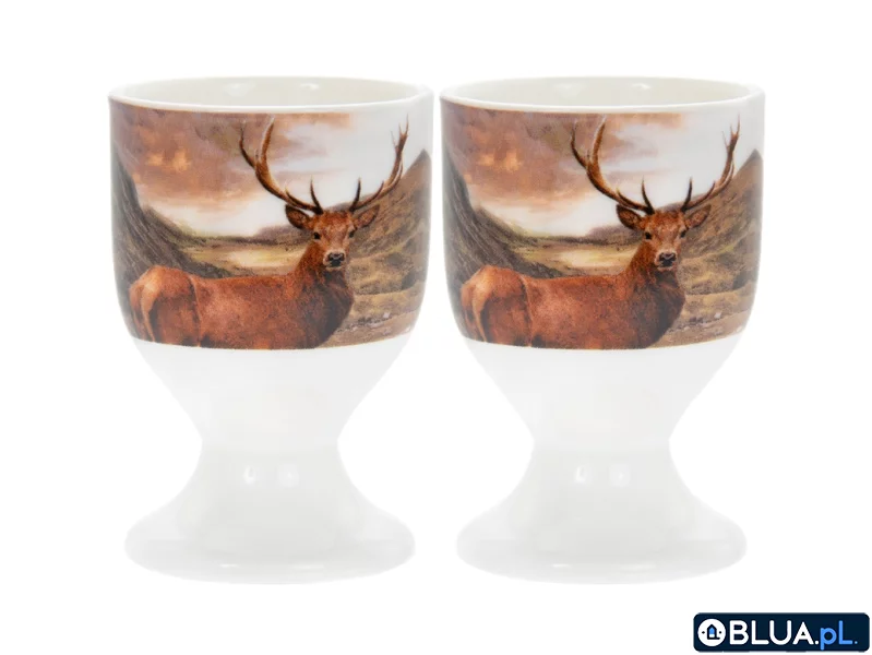 Kieliszki utrzymują jaja stabilnie w miejscu, co ułatwia wybieranie ze środka zawartości bez obaw o poprzenie dłoni gorącą skorupką. Na ściankach naniesiono myśliwską grafikę z motywem jelenia. W zestawie 2 sztuki.