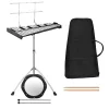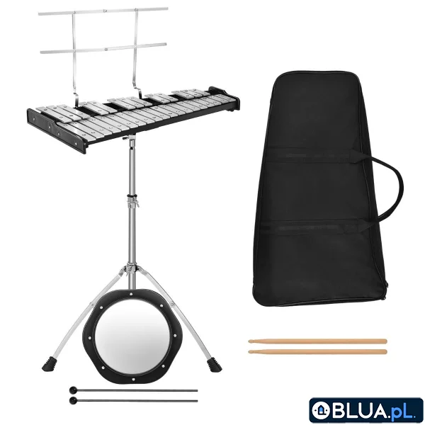 Jeśli odkryłeś w sobie muzyczną pasję, a nie wiesz, jaki instrument byłby dla ciebie najlepszy, postaw na nasze 32-tonowe dzwonki chromatyczne. W zestawie otrzymasz 2 pałeczki do dzwonków, stojak z regulacją wysokości, uchwyt na nuty, a do tego treningowy pad perkusyjny z pałeczkami. Wszystko to możesz wygodnie przenosić i przechowywać w torbie transportowej. Zestaw wykonany jest z materiałów najwyższej jakości. Trójnożny stojak z doskonałego aluminium jest całkowicie stabilny. Pad perkusyjny możesz zamocować na jego szczycie lub na dole. Kompletny zestaw do ćwiczeń: Oprócz 32-tonowych dzwonków chromatycznych w zestawie znajdziesz 20-centymetrowy pad perkusyjny, 2 pałeczki do dzwonków, 2 pałeczki perkusyjne, składany stojak, uchwyt na nuty i torbę transportową. Regulacja wysokości: Stojak umożliwia regulację wysokości w zakresie od 58 do 96 centymetrów. Pozwala to na używanie zestawu zarówno dzieciom, jak i dorosłym. Pad perkusyjny możesz zamocować zarówno na szczycie, jak i na dole stojaka, zależnie od potrzeb. Mocny stojak: Aluminiowe rurki są niezwykle odporne na połamanie, a przy tym bardzo lekkie. Trójnożna konstrukcja i podkładki antypoślizgowe to gwarancja całkowitej stabilności. Idealny prezent dla początkujących: 32-tonowe dzwonki chromatyczne i pad perkusyjny to doskonały wybór dla początkującego muzyka, który chce odkryć w sobie artystyczną pasję. Nazwy nut na płytkach ułatwiają naukę. Dzięki temu instrument sprawdzi się nie tylko na koncertach, ale i na lekcjach muzyki. Łatwe przenoszenie i przechowywanie: Torba transportowa umożliwia wygodne przenoszenie zestawu. Dzięki temu możesz grać tam, gdzie chcesz. Zawartość opakowania: 1 x Dzwonki chromatyczne 2 x Pałeczka do dzwonków 2 x Pałeczka do maty perkusyjnej 1 x Mata perkusyjna 1 x Uchwyt na nuty 1 x Regulowany stojak 1 x Torba transportowa