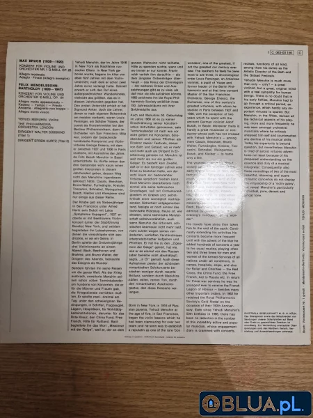 Max Bruch + Felix Mendelssohn Bartholdy to używana płyta winylowa zawierająca kolekcję utworów klasycznych w wykonaniu Max Brucha i Felixa Mendelssohna Bartholdy’ego. Album składa się z 8 utworów, w tym takich klasyków jak „Koncert skrzypcowy g-moll op. 26” Max Brucha oraz „Symphony No. 4 A Major, Op. 90” Felixa Mendelssohna Bartholdy’ego. Płyta jest idealna dla miłośników muzyki klasycznej i dla fanów twórczości Max Brucha i Felixa Mendelssohna Bartholdy’ego. Jest to świetny wybór dla tych, którzy cenią sobie piękne wykonanie utworów klasycznych z orkiestrą.