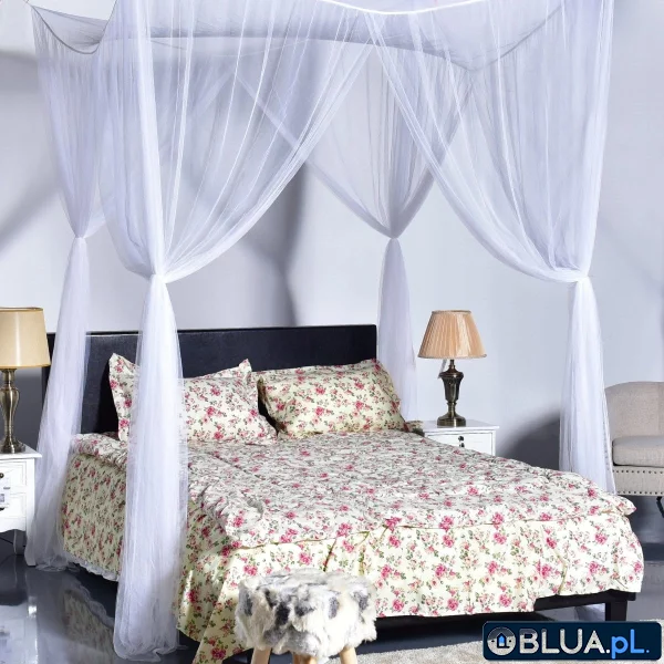 Elegancka moskitiera nad łóżko Prezentujemy przewiewny baldachim nad łóżko idealny do Twojej sypialni! Pierwotnie takie pokrycia były przeznaczone do zatrzymywania ciepła i zapewniania prywatności. Dziś baldachim do łóżka jest uwielbiany ze względu na swój wspaniały wygląd, który wprowadza do przestrzeni odrobinę luksusu oraz praktyczną stronę, czyli ochronę przed owadami. Jest to szczególnie ważne latem, gdy nie brakuje komarów czyhających na swego żywiciela. Wówczas moskitiery nad łóżko chronią przed ukąszeniami owadów, zapewniając prawidłową cyrkulację powietrza i spokojny, zdrowy sen. Gdzie najlepiej stosować baldachimy nad łóżko? Baldachim nad łóżkiem można zastosować w każdym stylu wystroju wnętrz. Wraz z rosnącą popularnością na rynku pojawiło się wiele różnych wariantów tego rodzaju pokryć. Baldachimy na łóżko można kupić w wielu różnych stylach, więc łatwo jest znaleźć taki, który pasuje do stylu Twojego mieszkania. Klasyczny baldachim w sypialni najlepiej sprawdzi się w większych pomieszczeniach z dużą ilością naturalnego światła oraz w loftowych wnętrzach z wysokimi sufitami. W mniejszych pokojach zamiast ciężkich materiałów nad łóżkiem lepsza będzie delikatna i zwiewna moskitiera baldachim. Dzięki niej nie przytłoczysz przestrzeni, a uzyskasz elegancki efekt z dodatkową ochroną przed owadami. Elegancka moskitiera w formie baldachimu do łóżka W naszym sklepie proponujemy Ci zakup baldachimu moskitiery, który został wykonany z wysokiej jakości siatki poliestrowej. Jest lekka, wytrzymała oraz przyjemna dla skóry. Moskitiera nad łóżko może swobodnie pełnić funkcję dekoracyjnego baldachimu. Została stworzona w prostym i eleganckim stylu, dzięki czemu zamontowana nad łóżkiem staje się doskonałą dekoracją Twojej sypialni. Ponadczasowa forma świetnie pasuje do każdego motywu dekoracyjnego. Baldachim nad łóżko jest łatwy w montażu. Możesz go zawiesić w dowolnej formie, dzięki czemu jest odpowiedni zarówno do małych (dziecięcych lub pojedynczych), jak i dużych łóżek. Wszystkie elementy potrzebne do instalacji zostały dołączone do zestawu. Cechy Przewiewny baldachim idealny do Twojej sypialni! Ochrona przed owadami - moskitiera ochroni Cię przed ukąszeniami owadów, a jednocześnie zapewni prawidłową cyrkulację powietrza i spokojny, zdrowy sen Wysokiej jakości materiał - baldachim został wykonany z wysokiej jakości siatki poliestrowej, która jest niezwykle lekka, wytrzymała oraz przyjazna dla skóry Prosty design - baldachim został zaprojektowany w prostym i eleganckim stylu, dzięki czemu będzie doskonałą dekoracją Twojej sypialni. Ponadczasowa forma doskonale pasuje do każdego motywu dekoracyjnego Łatwość montażu - moskitiera jest bardzo prosta w montażu i można ją zawiesić w dowolnej formie, dzięki czemu jest odpowiednia zarówno do małych, jak i dużych łóżek. Wszystkie elementy potrzebne do instalacji zostały dołączone do zestawu