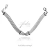 nr. prod. 306.383 Bransoletka srebrna typu calza z kuleczkami Srebro próba: 925 rodowana Waga bransoletki: ~ 10,55 g Długość: 16,5 cm + 2,5 cm łańcuszka do przedłużenia Szerokość bransoletki: 0,8 cm Zapięcie: karabińczyk W naszym Sklepie - AnKa Biżuteria - biżuterię pakujemy w piękne pudełeczka wysokiej jakości! - na zdjęciu.