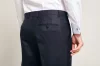 Granatowe spodnie garniturowe Aston Klasyczne granatowe spodnie garniturowe Aston wykonane z włoskiej wełny 2ply o skrętności 130's to uniwersalna i ponadczasowa propozycja męskiej garderoby. Dzięki podwójnie skręconej nici tkanina jest niezwykle sprężysta, co przekłada się na świetną prezencję nie tylko na początku uroczystości, ale przez cały czas noszenia tych spodni w pracy bądź na ważnych uroczystościach o charakterze prywatnym. Spodnie do garnituru we włoskim stylu Spodnie do garnituru powinna cechować przede wszystkim elegancja i wygoda. Dlatego też granatowe spodnie ASTON zostały stworzone na bazie tkaniny z włoskiego regionu Kampania. Włoski sznyt tych spodni nie bazuje jednak jedynie na tkaninie o wysokich parametrach sprężystości i oddychalności jakich oczekują Włosi w zależności od okazji i pory roku. Włoski charakter to przede wszystkim przemyślana, ponadczasowa konstrukcja dopasowana do współczesnych standardów sylwetki. Właśnie z tego powodu krój spodni ASTON lepiej układa się w biodrach oraz daje więcej komfortu na wysokości ud. Dół nogawek w spodniach ASTON nie jest bardzo zwężony ze względu na coraz bardziej widoczne we Włoszech odchodzenie od takiej konstrukcji. Dodatkowo takie podejście do dolnej części spodni gwarantuje więcej miejsca na łydkę dla osób, które mogą mieć problem ze znalezieniem właściwego kroju wśród konwencjonalnej odzieży. Spodnie garniturowe w jakości szycia na miarę. Granatowe spodnie garniturowe ASTON są efektem uśrednienia setek indywidualnych projektów spodni szytych na miarę w pracowniach VAN THORN w Warszawie oraz Gdyni. Dzięki zebraniu doświadczeń marki spodnie te na bieżąco odpowiadają na potrzeby sylwetkowe i anatomiczne współczesnego mężczyzny. Spodnie do garnituru ASTON dostępne są również stacjonarnie w obu pracowniach marki VAN THORN, gdzie istnieje możliwość ich przymierzenia, zakupu i ewentualnego naniesienia poprawek krawieckich lub stworzenie na ich bazie indywidualnego projektu szytego na zamówienie.