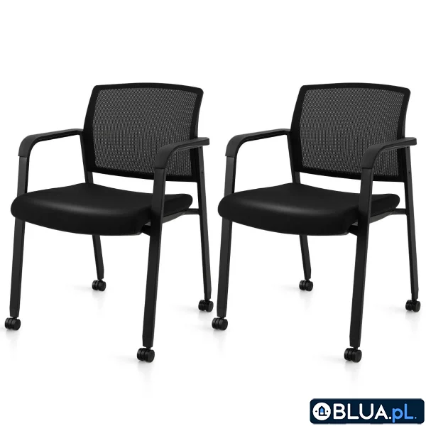 Komplet 2 czarnych krzeseł konferencyjnych z kółkami