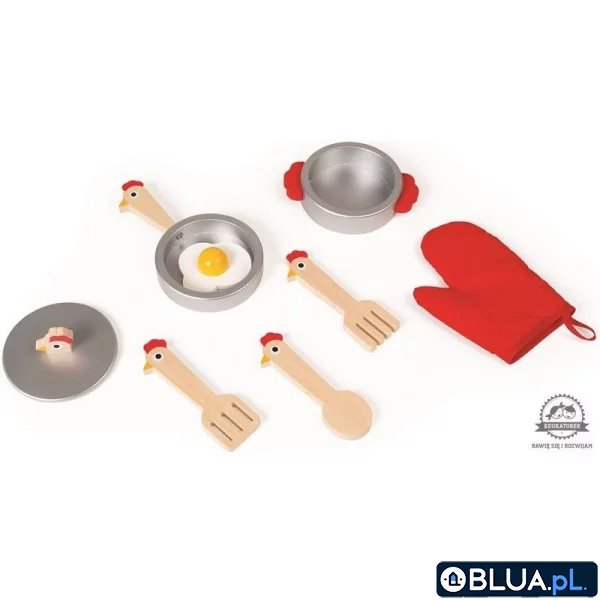 (np. pokrętła i palniki kuchni w kształcie jajek, a łyżki i garnki mają rączki w kształcie kurek).
