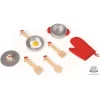 - garnek z przykrywką, patelnię z jajkiem sadzonym oraz rękawicę kuchenną.