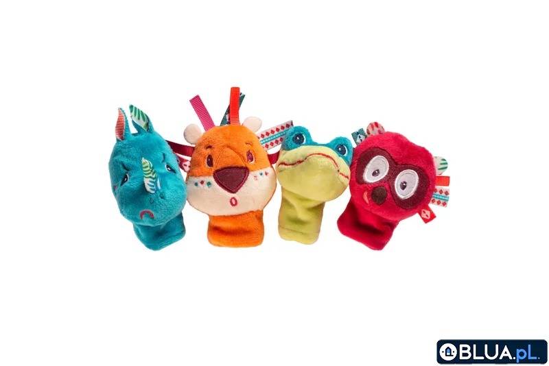 Zestaw 4 mini-pacynek na palce Dżungla to idealna zabawka do snucia opowieści, nauki empatii i oswajania z niełatwymi emocjami. W skład zestawu wchodzą: Nosorożec Marius, Krokodyl Anatol, Lemur George i Lew Jack Miny zwierzątek wyrażają różne emocje – kolejno: smutek, złość, radość i zaskoczenie. Po wsunięciu w nie placów (od dołu) można nimi poruszać i je „ożywiać”, odgrywając scenki według własnych pomysłów. Zabawka jest perfekcyjnie wykończona, z dbałością o każdy szczegół i w pełni bezpieczna dla dziecka. Pobudza dziecięcą wyobraźnię i ciekawość, rozwija małą motorykę (chwytanie, potrząsanie, kontrolowanie ruchów dłoni), aktywizuje zmysły wzroku i dotyku, a przede wszystkim pomaga w zdobywaniu nowych umiejętności społecznych. Do tej zabawki możesz dobrać inne z tym samym bohaterem. Idealnie nadaje się na prezent. Można prać w pralce w temperaturze do 30°C w delikatnym cyklu.