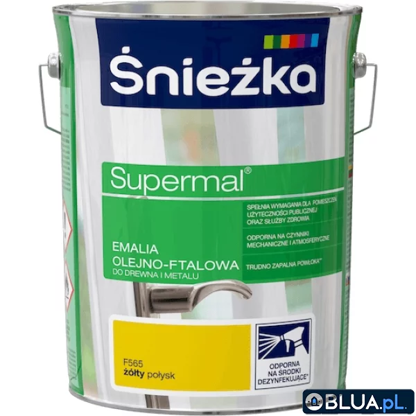 SUPERMAL® Emalia olejno-ftalowa stosowana jest do dekoracyjno-ochronnego malowania drewna, materiałów drewnopochodnych, tynków oraz elementów stalowych i żeliwnych użytkowanych wewnątrz i na zewnątrz pomieszczeń, takich jak: okna, drzwi, meble, ogrodzenia, lamperie itp. Polecana do stosowania w pomieszczeniach mieszkalnych, przeznaczonych na stały pobyt chorych w budynkach służby zdrowia oraz przeznaczonych na stały pobyt dzieci i młodzieży w budynkach oświaty, a także w pomieszczeniach przeznaczonych do przechowywania produktów żywnościowych (bez bezpośredniego kontaktu z żywnością). Emalia odporna na środki dezynfekujące*. Spełnia wymagania pomieszczeń użyteczności publicznej i służby zdrowia. Odporna na czynniki mechaniczne i atmosferyczne. Trwałe i żywe kolory. Doskonała wydajność i krycie. Trudno zapalna powłoka - klasa palności D-s1, d0. *badania przeprowadzono na wybranych próbkach dezynfektantów