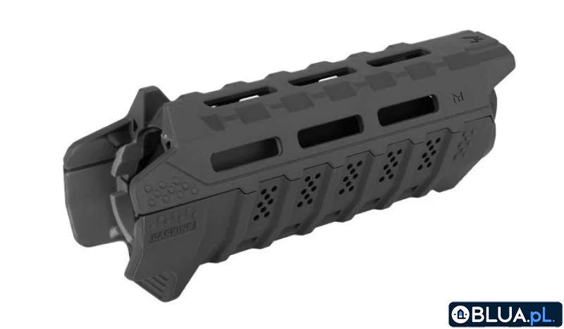 Naniesienie otworów w standardzie M-LOK pozwala na montaż akcesoriów taktycznych a metalowa tarcza we wnętrzu poprawia chłodzenie lufy i elementów systemu gazowego.