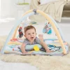 Mata edukacyjna Hug & Hide Kolorowe, przyjazne wzory i urocze zwierzątka zachęcają dziecko do multisensorycznej zabawy. Cztery wiszące zabawki zawierają bezpieczne dla dziecka lusterko, muzykę, grzechotkę, gryzak i wiele innych! Poduszka Tummy Time wspiera dziecko w czasie zabawy na brzuszku i zachwyca różnorodnymi teksturami. Miękka mata posiada szeleszczące detale, bezpieczne dla dziecka lusterko i gryzak. Maluch będzie zachwycony wszystkim co dotknie, zobaczy i usłyszy! Opis szczegółowy: Zabawka odpowiednia dla dzieci w wieku 0+ Zabawa na 3 sposoby: na plecach, na brzuszku i na siedząco 16 rozwojowych aktywności 13 zaczepów do wiszących zabawek: Piesek z gryzakiem, Owieczka z bezpiecznym lusterkiem i muzyką, Małpka-grzechotka oraz dzwoniąca, pluszowa Sowa Miękka, pikowana mata zawiera bezpieczne lusterko, szeleszczące skrzydełka i gryzak w kształcie banana W zestawie poduszka Tummy Time Wymiary (cm): 86 x 86 x 53