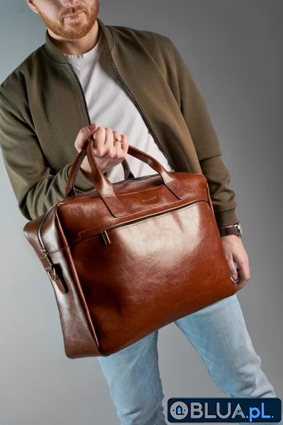 Męska torba na ramię, wykonana ze skóry naturalnej. Model torby Brødrene R03 zaprojektowany został na potrzeby nowoczesnego mężczyzny. Torba świetnie sprawdzi się na co dzień w pracy, do biura czy też na krótki weekendowy wyjazd. Pomieści laptopa 17 cali, co czyni z niej niezwykle funkcjonalną i kompaktową propozycję na podręczny bagaż.