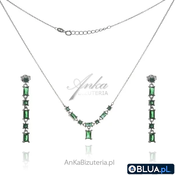 Nr produktu: 306.466kpl Srebrny komplet próba 925 rodowany Uszlachetnienie srebra: rodowany (uszlachetnione srebro - zabezpieczone przed śniedzeniem) Kamienie: zielone cyrkonie Naszyjnik Waga naszyjnika ~ 3,15 gDługość wokół szyi: 42 cm plus 3 cm przedłużki Szerokość naszyjnika: do 0,5 cm Kolczyki Waga kolczyków; 3 g Wymiary kolczyków: długość 3,5 cm Szerokość kolczyków: 0,4 cm Rodzaj zapięcia: sztyftOpakowanie do kompletu gratis - na załączonym zdjęciu W tym komplecie zaklęta jest precyzja i prawdziwe minimalistyczne piękno, które jest biżuteryjnym, delikatnym, nienachalnym zdobieniem przykuwającym wzrok. Biżuteria , która komunikuje, że lubię być kobietą w nienarzucający sposób.