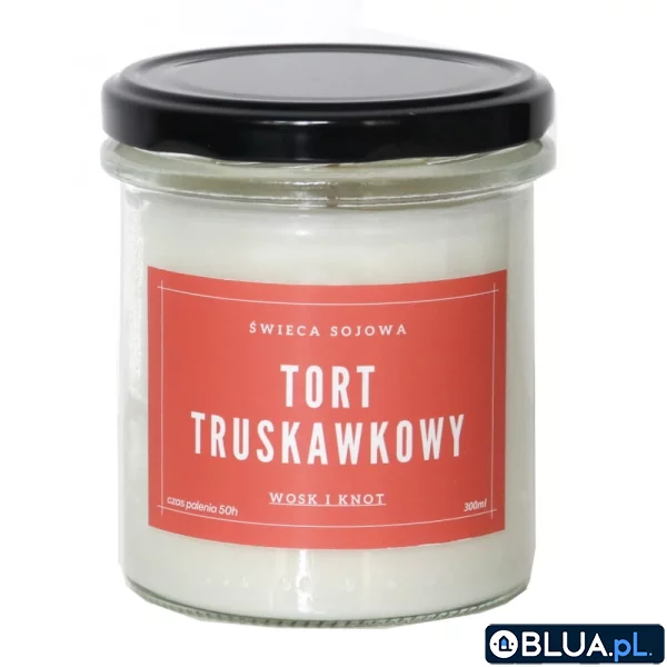 Świeca sojowa TORT TRUSKAWKOWY Ręcznie robiona świeca sojowa rozpieści Twoje zmysły podczas relaksu, rytuału picia kawy i herbaty lub po prostu na co dzień. Świeca wyprodukowana została w Polsce z dobrych składników – parafinę zastąpiono biodegradowalnym, niealergizującym i wolnym od GMO woskiem sojowym, natomiast knot wykonany został z ekologicznej, niebielonej bawełny. Całą pachnącą zawartość umieszczono w szklanym słoiku, któremu można później nadać drugie życie! I co najważniejsze: wosk sojowy nie zanieczyszcza powietrza i jest bezpieczny dla zdrowia! TORT TRUSKAWKOWY to zapach dla wszystkich miłośników truskawek w każdej postaci! U nas zagościły one w pysznym torcie z bitą śmietaną! Brzmi pysznie, prawda? Pojemność: 300mlCzas palenia: 50 godzinIntensywność: 4/5 – intensywnie pachnąca świeca sojowaKażda świeca zapakowana jest w osobny kartonik.Prawidłowe palenie świecy sojowej pozwoli Ci na cieszenie się najlepszymi efektami! • Zadbaj, żeby przed każdorazowym odpaleniem świecy knot nie był dłuższy niż 0,5 cm.• Kiedy Twoja świeczka spotka płomień pierwszy raz, pozwól żeby mogła się nim nacieszyć. Pierwsze palenie powinno trwać minimum 3 godziny lub do czasu pełnego upłynnienia. Zapach świecy powinieneś poczuć po ok. 20 minut od zapalenia.• Dla osiągnięcia najlepszego efektu zapachowego kolejne wypalanie świeczki nie powinno trwać dłużej niż 3 godzin. Płomień najlepiej ugaś gasidłem lub pozbaw świeczki dostępu do tlenu. wielkanoc2020