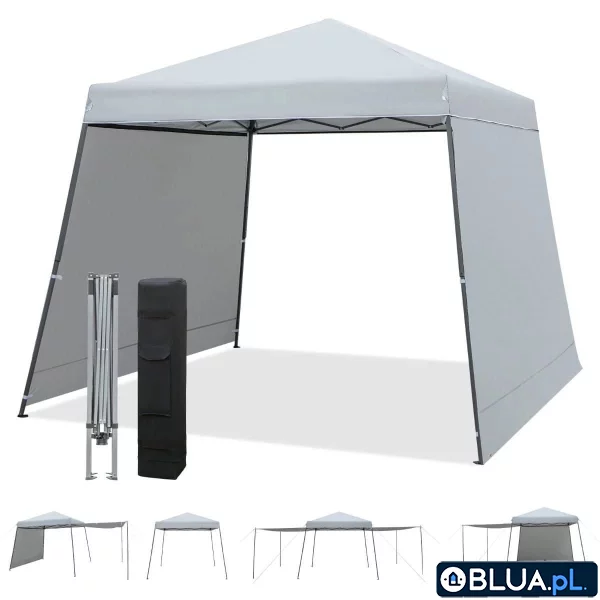 Nasza składana altana z markizą, zapewni Ci duży zacieniony obszar podczas pikników, grillowania, przyjęć, imprez plenerowych, kempingu i wielu innych okazji. Po złożeniu zajmuje mało miejsca i można ją wygodnie przechowywać w specjalnej torbie na kółkach, co ułatwia jej transport. Składana konstrukcja: Altanę z łatwością można złożyć i rozłożyć bez konieczności używania narzędzi, dzięki wygodnemu centralnemu mechanizmowi pchającemu. Co więcej, możesz wybrać jedną z trzech dostępnych wysokości (235/245/255 cm), aby dostosować altanę do swoich potrzeb. Wielofunkcyjne ściany i osłony przeciwsłoneczne: Wyposażona jest w dwie ściany, które można zamontować lub zdemontować po różnych stronach, aby skutecznie zabezpieczyć się przed padającymi promieniami słonecznymi. Za pomocą 4 tyczek i lin, możesz przekształcić ściany w markizy, tworząc dodatkowe zacienione obszary po obu stronach. Trwały i wodoodporny materiał: Nasza altana jest wykonana z wytrzymałego, wodoodpornego, ognioodpornego i odpornego na zużycie i rozdarcia materiału Oxford, co zapewnia długotrwałe użytkowanie. Jej wnętrze pokryte jest srebrną podszewką, która zapewnia dodatkową ochronę przed słońcem. Wytrzymała i stabilna konstrukcja: Konstrukcja nośna altany została wykonana z solidnego metalu, który dodatkowo jest malowany proszkowo, co zapewnia odporność na rdzę i pękanie. Dodatkowo, liny, kołki i nóżki wzmacniają odporność na wiatr. Altana została zaprojektowana z pochylonymi nogami, zwiększając jej stabilność. Cechy: Wyposażona w torbę na kółkach ułatwiającą przechowywanie i transport. Szybki i łatwy montaż oraz demontaż dzięki centralnemu mechanizmowi. Nadaje się na kemping, plażę, do ogrodu, na imprezy sportowe, pikniki, imprezy rodzinne itp. Zaprojektowana z dwoma ścianami, które mogą być również używane jako markizy dzięki metalowym słupkom. Kąt markizy można regulować w zależności od nasłonecznienia. Wykonana z wysokiej jakości, wodoodpornej, trwałej i ognioodpornej tkaniny Oxford. Srebrne podszewki pomagają blokować promienie słoneczne i zapewniają ochronę przeciwsłoneczną. Wsparta na solidnej metalowej ramie z odporną na rdzę powłoką proszkową. Liny, kołki i nóżki zapewniają stabilność. Pochylone nogi pomagają altanie zachować większą stabilność. Łatwa regulacja wysokości na 3 poziomach za pomocą przycisku. Paczka zawiera: 1 x składana altana ogrodowa 2 x ściany 12 x liny 16 x kołki 1 x torba transportowa 1 x instrukcja obsługi
