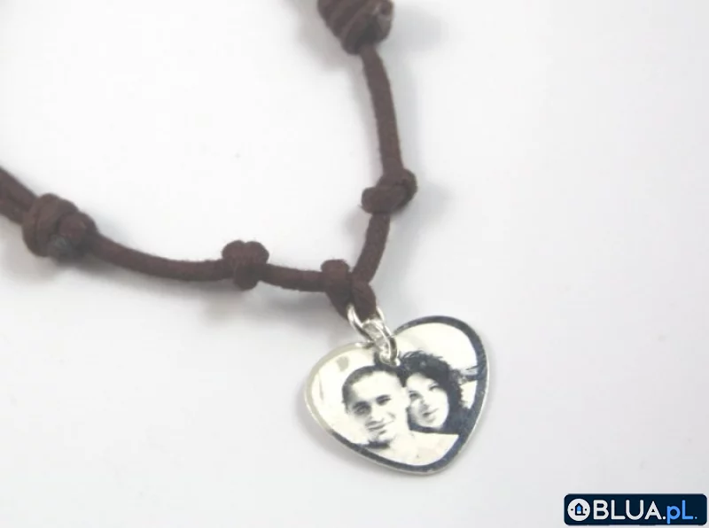 Komplet:- Zawieszka Serce w Sercu S z Twoim grawerem- Bransoleta wykonana ze Sznurka Jubilerskiego.- Pudełko upominkowe VictriaW.Zawieszka wykonana jest ze srebra próby 925. Przy kupnie za darmo wykonamy grawer: - z jednej strony grawer mechaniczny Twojego zdjęcia, - z drugiej strony grawer tekstu do 65 znaków lub grafiki. Dzięki indywidualnemu grawerowi produkt nabiera dla osoby obdarowanej wartości sentymentalnej.Bransoletka wykonana ze sznurka jubilerskiego z jednym elementem srebrnym.Materiał: Srebro próby 0,925,Waga srebra: ok. 1,25 g Wymiary srebrnej blaszki:Szerokość 19,6 mmWysokość 16,6 mm Grubość zawieszki:0,4 mmKolory sznurka do wyboru:Opakowanie: Oryginalne pudełko prezentowe producenta zawieszek, marki: "VictoriaW."Przykłady graweru na podobnych produktach:(Grawer wykonujemy mechanicznie, zawieszki są srebrne, kolor czarny to efekt odbicia)Za dopłatą +20zł wewnątrz pudełka doczepimy mosiężną blaszkę (kolor srebrny lub złoty w zależności od dostawy) i wykonamy Twój grawer Zdjęcia, tekstu, grafiki, loga. Opcja dostępna w naszej ofercie:Idealny i modny prezent dla każdej kobiety niezależnie od wieku. Wspaniały prezent na Imieniny, Urodziny, Rocznicę, Walnetynki, Dzień Kobiet, Mikołaja, oraz pod choinkę na Gwiazdkę Świąt Bożego Narodzenia....